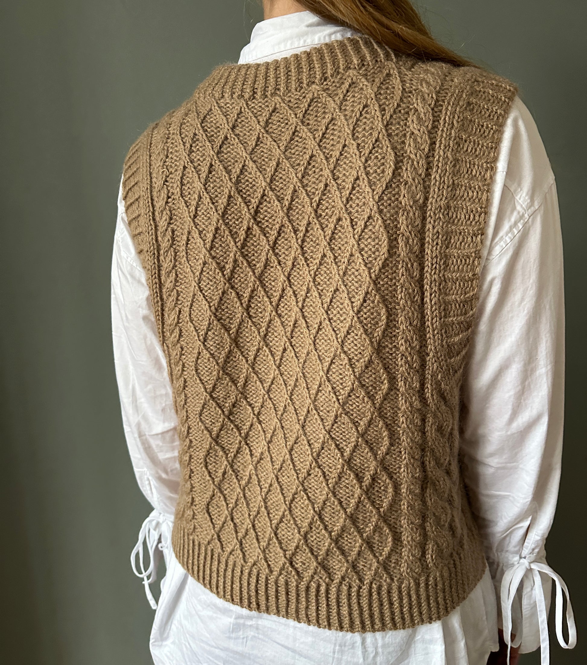 Denne opskrift kombinerer forskellige former for flet, snoninger og strukturstrik til en slipover der strikkes oppefra og ned. Først strikkes rygstykket, hvorefter der samles masker op til skuldre. Forstykket og rygstykket samles og der strikkes på rundpind til slipoveren når til fulde længde. Opskriften indeholder både en guide til slipoveren med og uden en slids i hver side af ribkanten.
