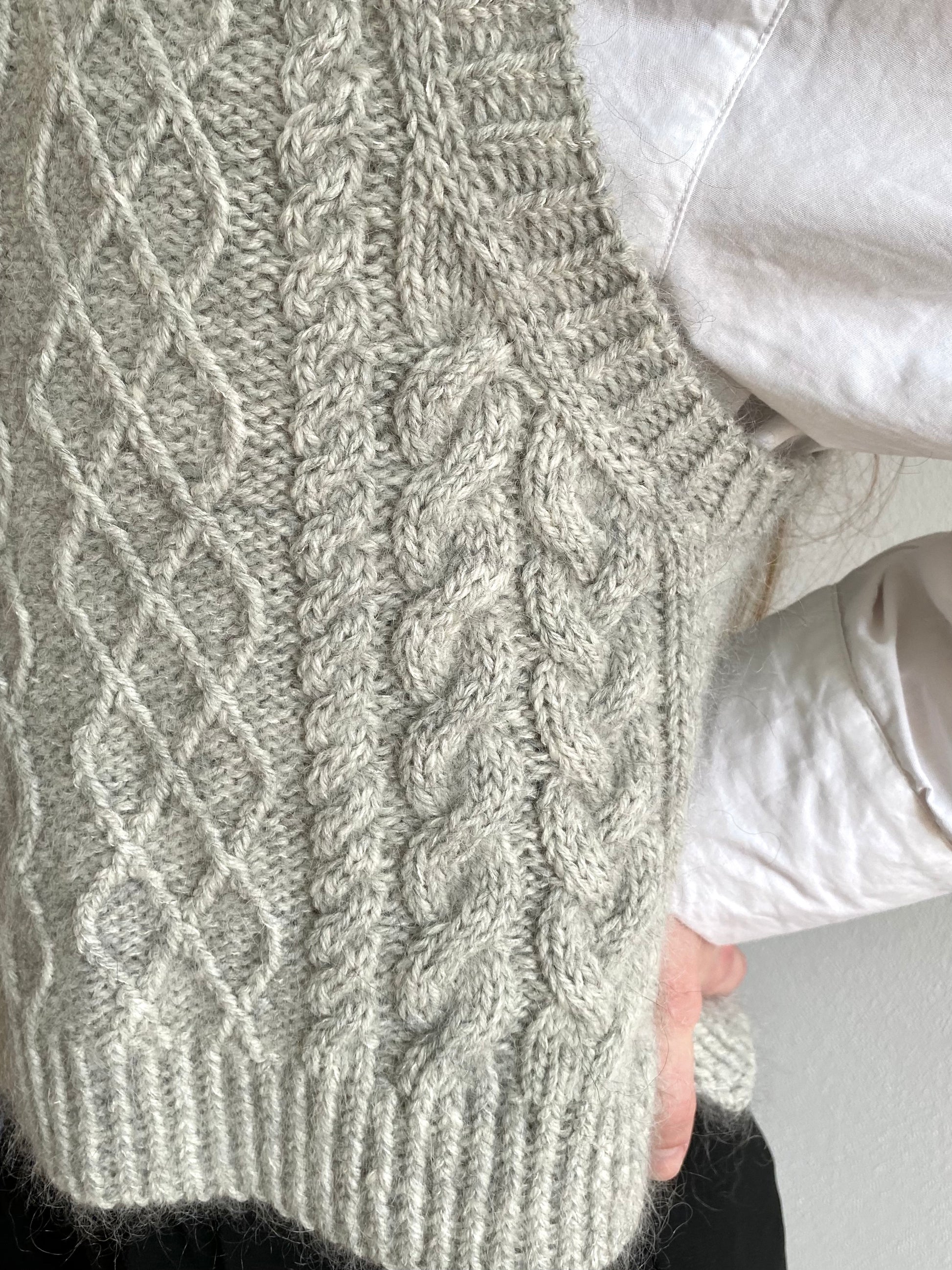 Circular needles: 4,5 mm and 3,5 mm with 80 cm wires (and 40 cm wires to avoid magic-loop) plus a cable needle.