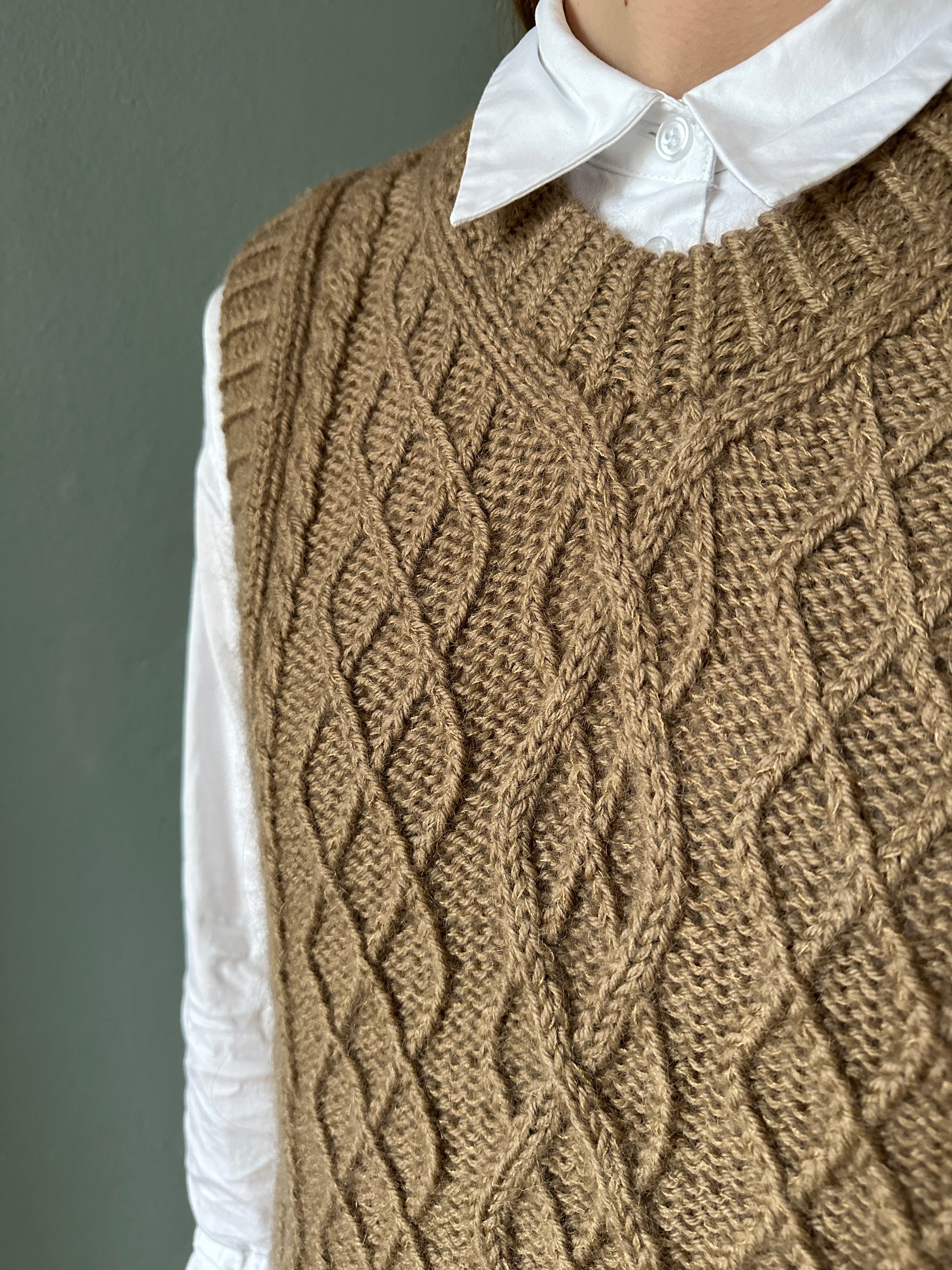 The shown brown slipover is knitted in the following colors:
