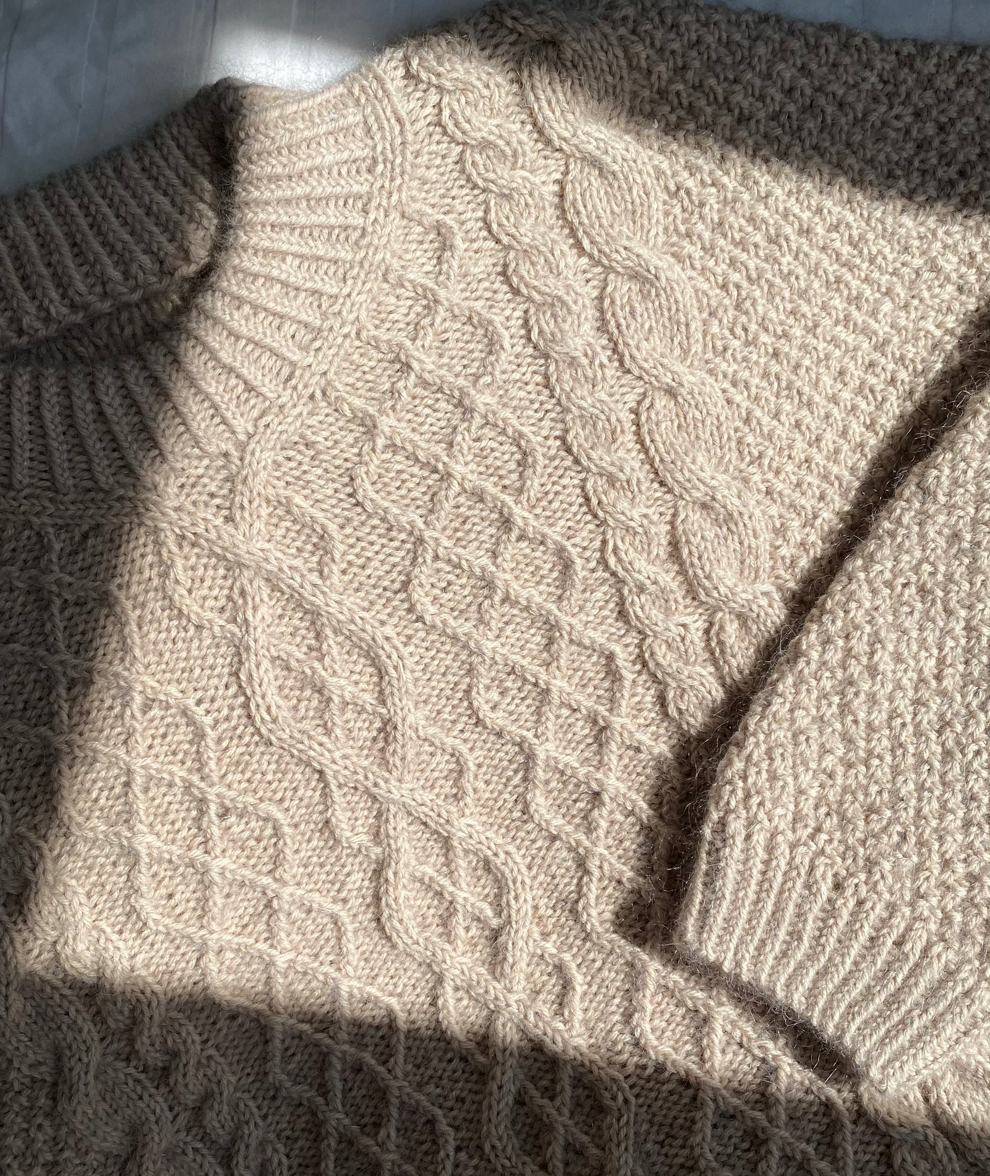 Genseren strikkes med paneler på for- og bakstykket som har fletter og strukturstrikk, mens resten av genseren, ermene og sidene av genseren, strikkes i dobbel perlestrikk. Mønsteret på genseren er beskrevet gjennom diagrammer hvor hver 1x1 firkant viser 1 maske.